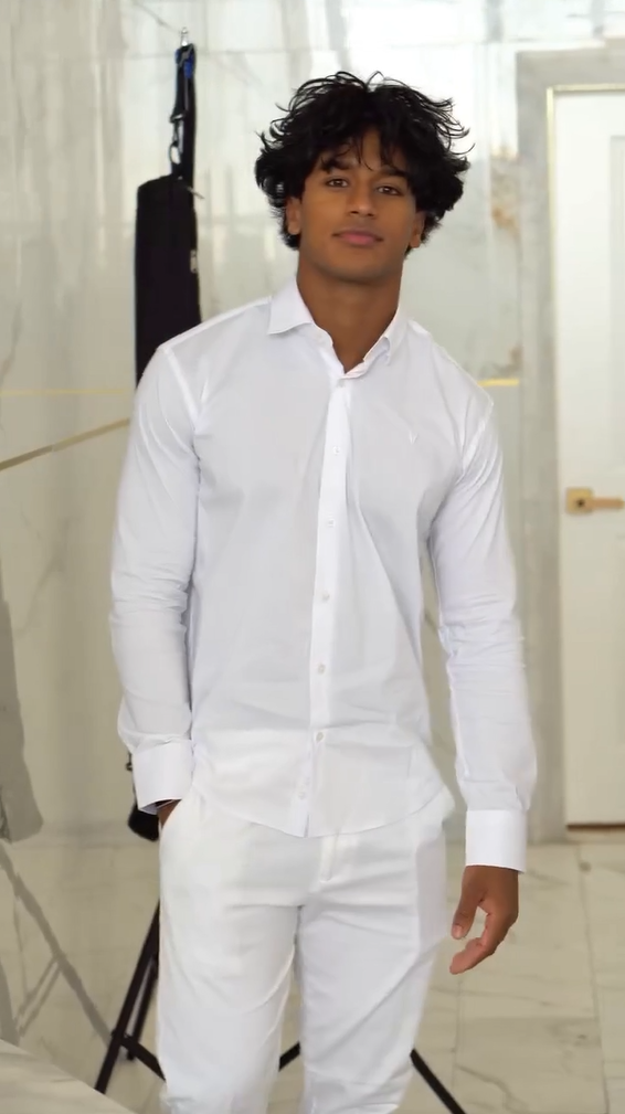 - The Signature Suit: A sharp, double-breasted white blazer with slim trousers — tailored to perfection, it’s the cornerstone of the collection.