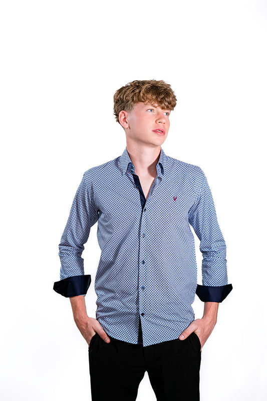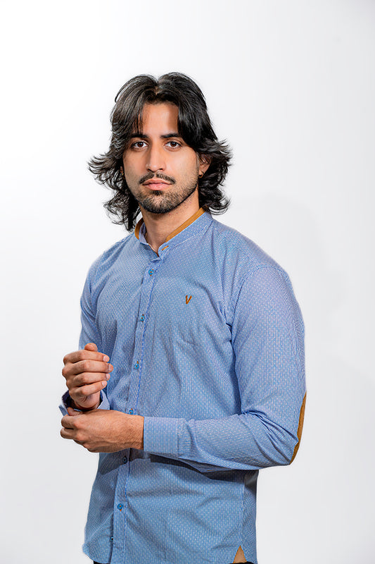 Modern Blue Shirt with Pattern and Contrast Cuffs