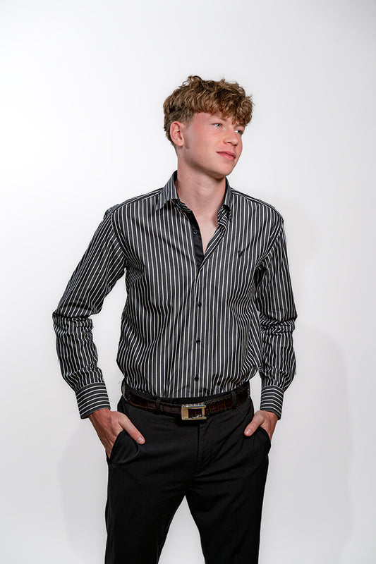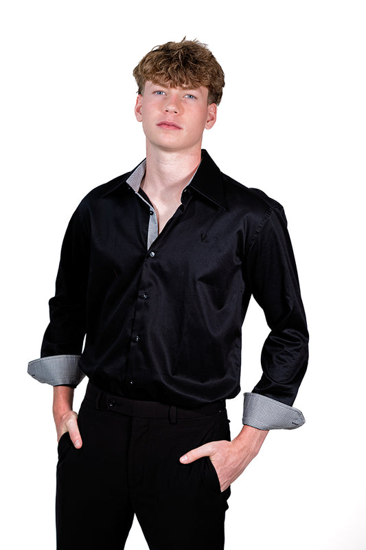 Valnti Black Slim Fit Dress Shirt with Stylish Inner Collar