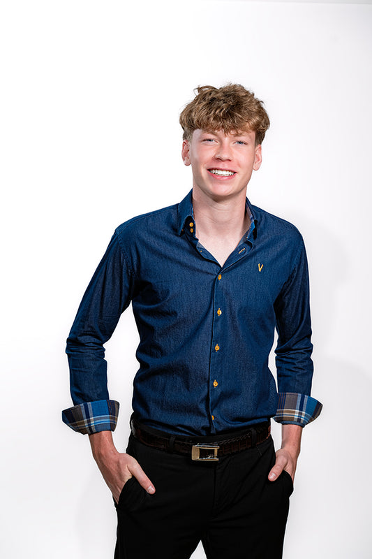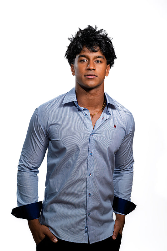 Valnti Navy Smart Shirt with Checkered Collar and Cuffs