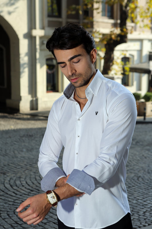 Timeless Elegance with the White High Collar Dress Shirt