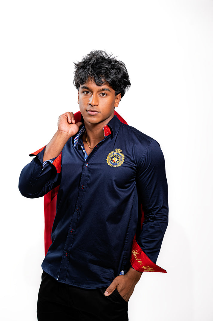 Perfectly suited for those who appreciate modern fashion infused with regal detail, the Valnti Navy Blue Shirt with Red Cuffs and Crest is not just a wardrobe addition—it’s a personal style declaration. Pair it with tailored trousers and polished dress shoes for an elevated formal ensemble, or contrast it with dark jeans and loafers for a smart, casual outfit that still turns heads.