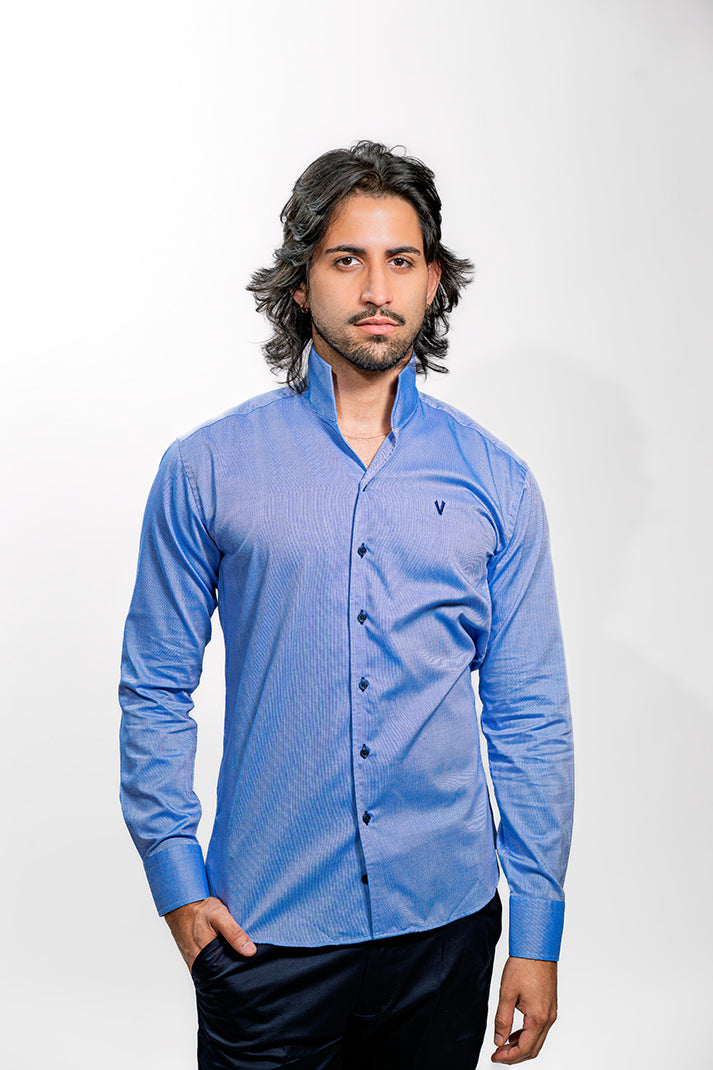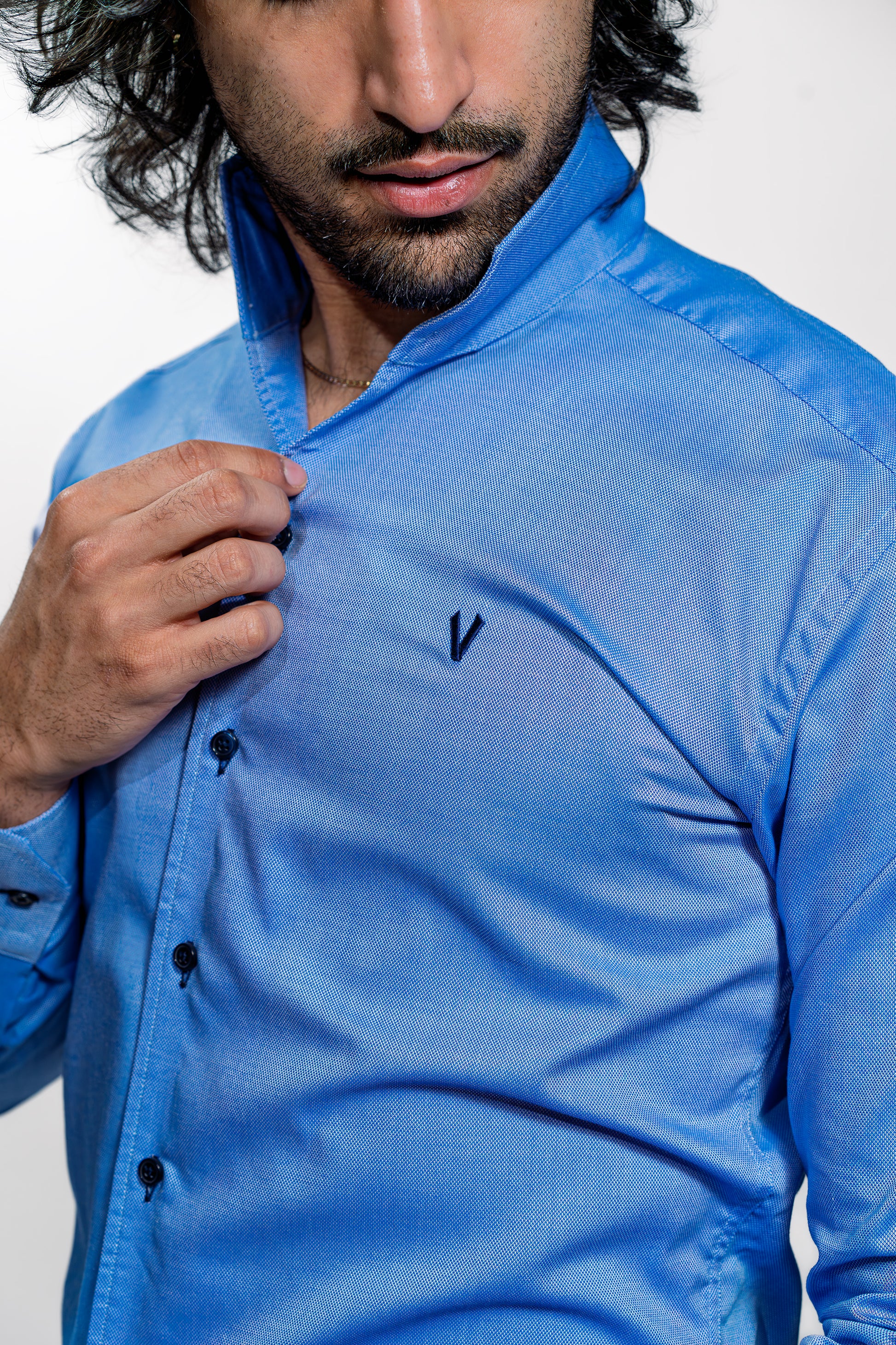 Valnti Men’s Blue Fly Collar Shirt – Stylish Casual & Formal Wear